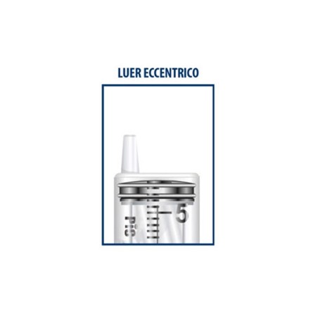 Luer eccentrico: l'attacco è identico al cono luer, ma posizionato lateralmente rispetto al cilindro.