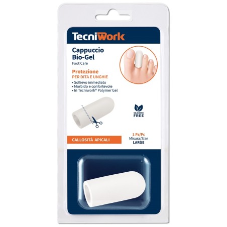 protezione per dita in morbido Tecniwork Polymer Gel. Sottile ed anatomico non crea ingombro e si adatta ad ogni tipo di calzatura. L'olio minerale rilasciato gradualmente dal gel effettua un'azione emolliente sulla pelle e sulle callosità facilitandone la rimozione.