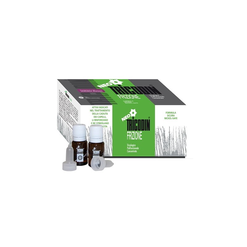 Frizione idroalcolica concentrata utile nel trattamento della alopecia androgenetica, in tutte le forme di alopecia disfunzionale e comunque quando sia necessario migliorare il trofismo dei capelli. Può essere inoltre associata alle normali terapie farmacologiche su base ormonale ed al Minoxidil. L'efficacia del trattamento si esprime non solo in termini di ridotta o arrestata caduta dei capelli, ma anche come effettiva ricrescita nelle zone di calvizie, con percentuali di successo più elevate nella donna (oltre il 70%), che nell'uomo, dove i risultati positivi si aggirano intorno al 50%. Il fenomeno della caduta dei capelli può derivare, oltre che da predisposizioni ereditarie, anche da specifiche malattie. Inoltre condizioni quali lo stress, la gravidanza o stati di deperimento organico, sono in grado di determinare un indebolimento dei capelli. Neo Tricodin Frizione interviene con un completo apporto energetico che irrobustisce i capelli e stimola i bulbi piliferi a riprendere il loro ciclo vitale. Rivitalizzante, contro la caduta dei capelli, ne stimola la ricrescita e ne previene la rottura. Irrobustisce i capelli e stimola i bulbi piliferi a riprendere il loro ciclo vitale.