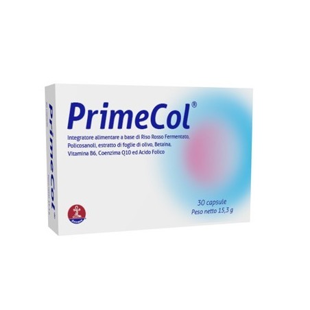 Primecol capsule è un integratore alimentare a base di riso rosso fermentato, Policosanoli, estratto di foglie di olivo, betaina, vitamina B6, coenzima Q10 ed acido folico per fornire un apporto supplementare di tali nutrienti in caso di carenze o aumentato fabbisogno.