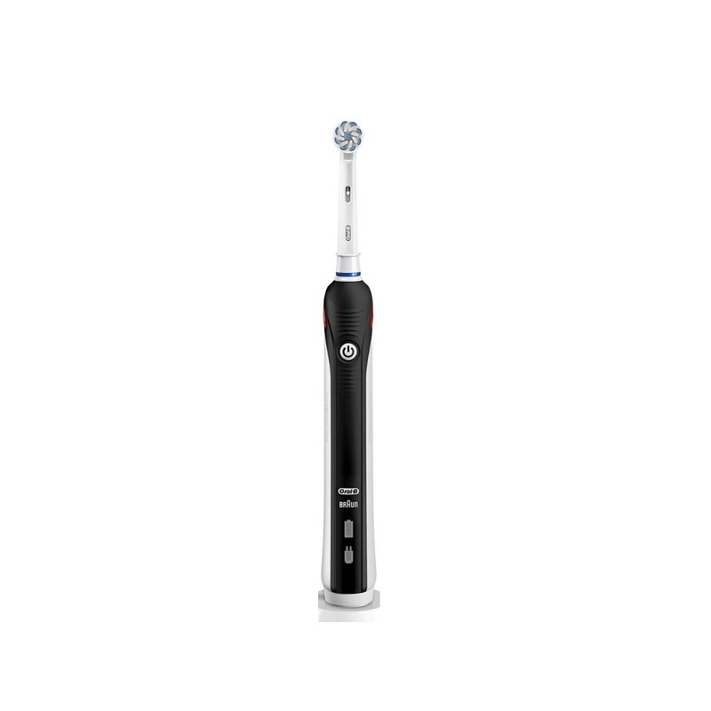 Spazzolino elettrico dotato di timer professionale, testina arrotondata con sensore di pressione dello spazzolamento, 2 modalità di spazzolamento. Prodotto da Procter & Gamble.