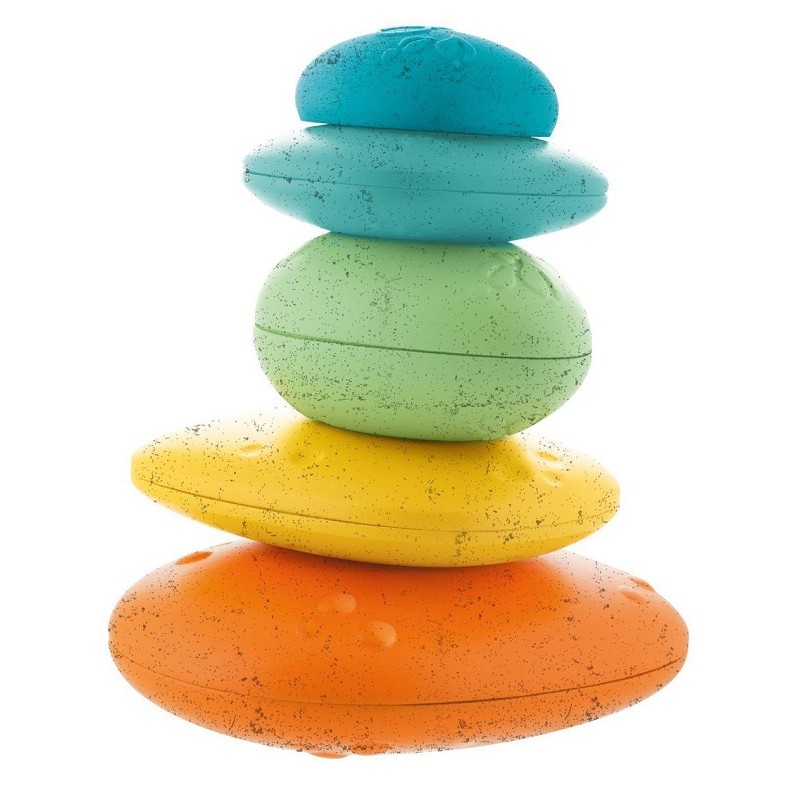 Giocattolo colorato impilabile, ispirato alla natura, rispettoso dell'ambiente, realizzato all'80% in plastica riciclata.
