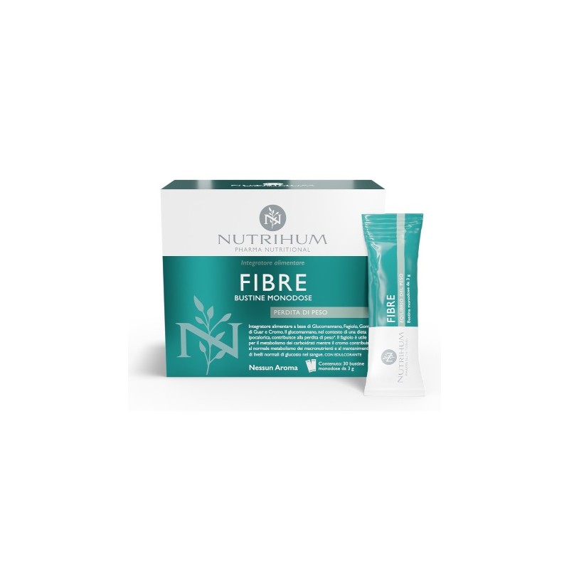 Nutrihum Fibre Perdita Di Peso è un integratore alimentare a base di glucomannano, fagiolo, gomma di guar e cromo.