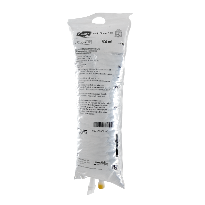 Sintomi La soluzione allo 0,45% è ipotonica con il sangue e determina riduzione dell’osmolarità plasmatica: il sovradosaggio può quindi portare a ipoosmolarità plasmatica. La somministrazione di dosi eccessive di soluzioni isotoniche ed ipertoniche di sodio cloruro può portare, a seconda delle condizioni cliniche del paziente, ad ipernatriemia, ipercloremia e/o ipervolemia. L’ipernatriemia (associata principalmente alla somministrazione di soluzioni ipertoniche) e la ritenzione eccessiva di sodio laddove sussista una difettosa escrezione di sodio a livello renale determina disidratazione degli organi interni, in particolar modo del cervello, e l’accumulo di fluidi extracellulari con edemi che possono interessare il circolo cerebrale, polmonare e periferico con comparsa di edema polmonare e periferico. L’accumulo di ioni cloro determina riduzione della concentrazione di ioni bicarbonato portando acidosi. Trattamento In caso di eccessiva infusione accidentale, il trattamento dovrà essere sospeso ed il paziente dovrà essere tenuto sotto osservazione per valutare la comparsa di eventuali segni e sintomi correlabili al farmaco somministrato, garantendo al paziente le relative misure sintomatiche e di supporto a seconda della necessità. In caso di sovradosaggio, la terapia deve essere mirata al ripristino delle concentrazioni fisiologiche dello ione sodio. In questi casi è raccomandata la somministrazione endovenosa di glucosio 5% o soluzioni di sodio cloruro ipotoniche o isotoniche (in quanto risultano ipotoniche per il paziente ipernatremico). In caso di elevata natremia si possono impiegare diuretici dell’ansa. Una natremia superiore a 200mmol/l può richiedere l’impiego della dialisi.