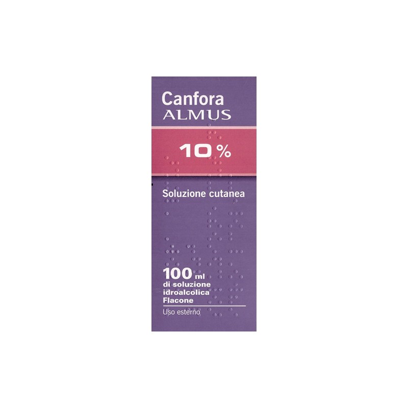 Questo prodotto contiene derivati terpenici che, in dosi eccessive, possono provocare disturbi neurologici come convulsioni in neonati e bambini. Il trattamento non deve essere prolungato per più di 3 giorni per i rischi associati all’accumulo di derivati terpenici quali ad esempio canfora, cineolo, niaouli, timo selvatico, terpineolo, terpina, citrale, mentolo e oli essenziali di aghi di pino, eucalipto e trementina (a causa delle loro proprietà lipofiliche non è nota la velocità di metabolismo e smaltimento) nei tessuti e nel cervello, in particolare disturbi neuropsicologici. Non deve essere utilizzata una dose superiore a quella raccomandata per evitare un maggior rischio di reazioni avverse al medicinale e i disturbi associati al sovradosaggio (vedere paragrafo 4.9). Il prodotto è infiammabile, non deve essere avvicinato a fiamme. Non usare soluzioni a base di canfora concentrate, contenenti più dell’11% di canfora, perché possono essere irritanti e pericolose. Non ingerire la soluzione di canfora, in quanto può causare effetti indesiderati gravi, compreso il decesso. Canfora soluzione cutanea non deve essere applicata sulle narici dei bambini anche in piccola quantità perché potrebbe causare shock. Informazioni importanti su alcuni eccipienti: Canfora Almus 10% soluzione cutanea, 1 flacone 100 ml soluzione oleosa contiene olio di arachidi raffinato. Non utilizzare questo medicinale in caso di allergia alle arachidi o alla soia. Canfora Almus 10% soluzione cutanea, 1 flacone 100 ml soluzione idroalcolica contiene idrossianisolo butilato e idrossitoluene butilato che possono causare reazioni cutanee locali (ad es. dermatiti da contatto) o irritazione degli occhi e delle mucose.