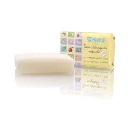 Pane detergente di finissimo sapone vegetale agli amidi di mais e di riso più le proteine dell'avena. Formulato appositamente per la pelle delicata dei bimbi, deterge con dolcezza lasciandola morbida e leggermente profumata.
