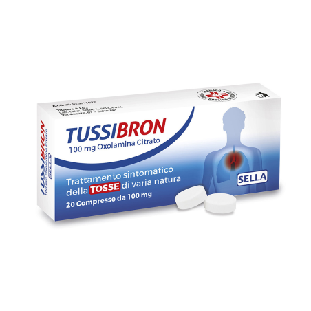 Tussibron 1% oxolamina citrato sciroppo 100 ml di sciroppo contengono: Principio attivo: Oxolamina citrato 1 g. Eccipienti con effetti noti: saccarosio, etanolo 96% (contenuto nell’aroma alkermes) e metile para-idrossibenzoato. Tussibron 100 mg oxolamina citrato compresse Una compressa contiene: Principio attivo: Oxolamina citrato 100 mg. Eccipiente con effetti noti: lattosio. Per l’elenco completo degli eccipienti, vedere paragrafo 6.1.