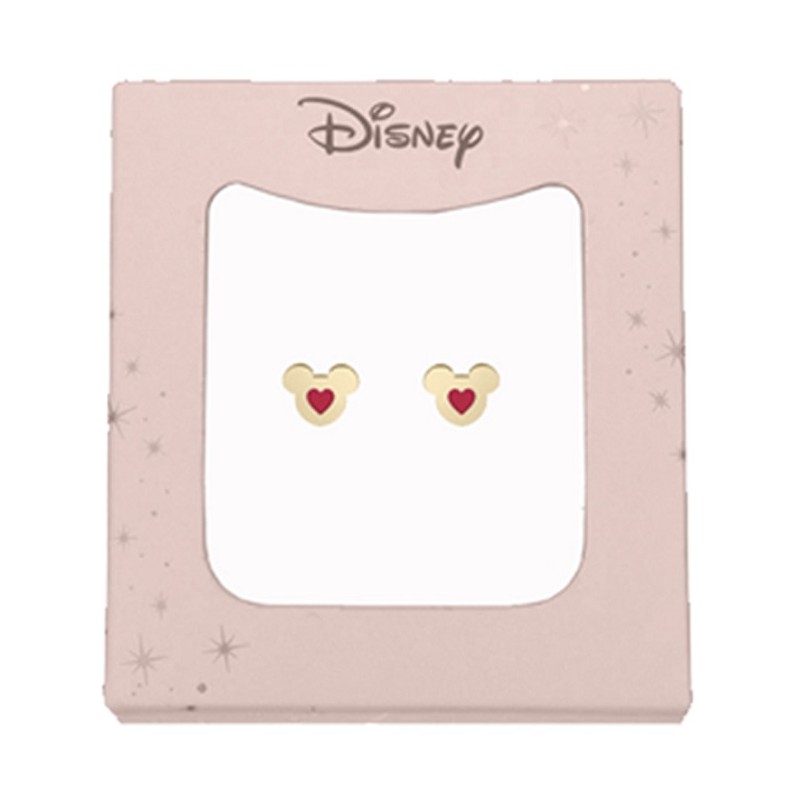 C&s Jewellery Disney Orecchino Micky Con Cuore Rosa Smaltato Placcato Oro 24kt