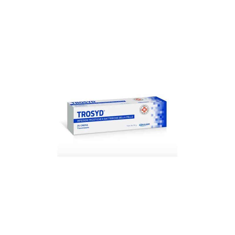 TROSYD 1% Crema – 1% Polvere cutanea – 1% Emulsione cutanea Dermatomicosi sostenute da dermatofiti, lieviti ed altri miceti sensibili al Tioconazolo. Infezioni cutanee da batteri Gram–positivi sensibili al farmaco. Per la concomitante attività antimicotica e antibatterica, è particolarmente ind...