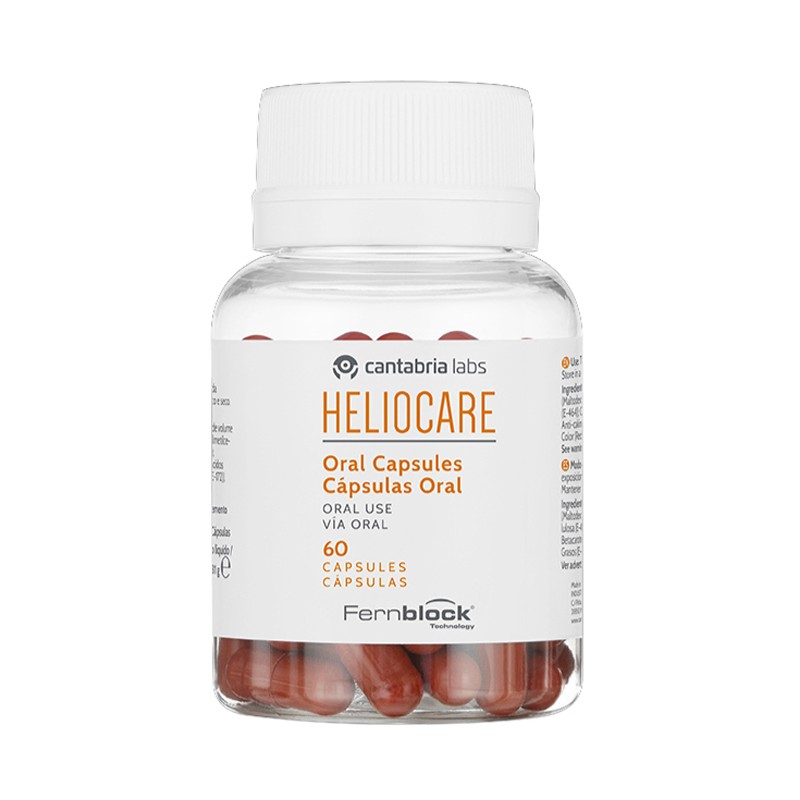 Integratore alimentare a base di Polypodium Leucotomos, Tè verde e Betacarotene, sostanze antiossidanti che contribuiscono alla protezione delle cellule dallo stress ossidativo. Heliocare Oral è utile per tutte le persone che svolgono attività lavorativa, sportiva, di hobby etc., all'aria aperta. È particolarmente indicato per soggetti a rischio quali Fototipo I e II, persone che sviluppano facilmente eritema, in vacanza al mare e in montagna anche in inverno (la neve infatti riflette circa l'80% della radiazione UV incidente).