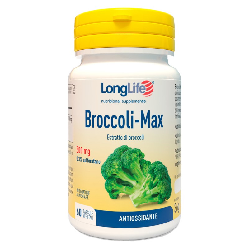 | Broccoli foglie estratto (25/30:1) secco idroalcolico tit. min. 0,3% sulforafano (metodo HPLC) | 500 mg 1,5 mg |