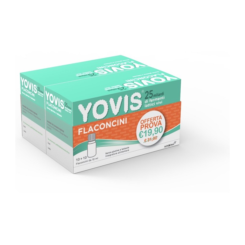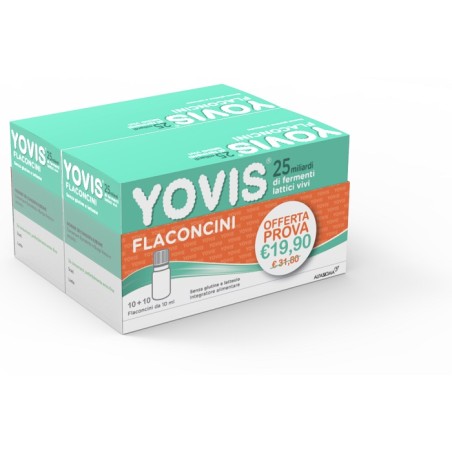 favorisce l'equilibrio della flora batterica intestinale che può risultare alterata. Yovis Flaconcini contiene questo particolare mix di fermenti lattici, nella più elevata concentrazione per un solo flaconcino: 25 miliardi.