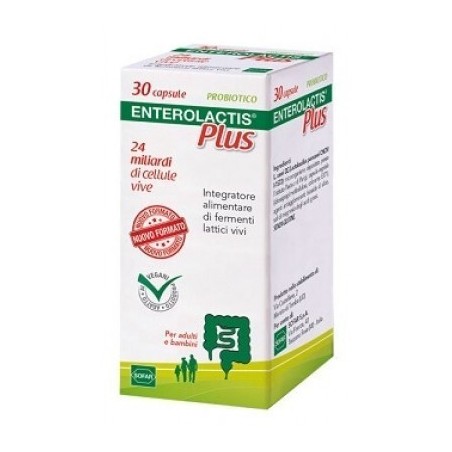 Sofar Enterolactis Plus è un integratore alimentare con 24 miliardi di fermenti lattici vivi, L. casei dg (Lactobacillus paracasei CNCM I-1572).