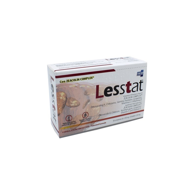 Lesstat contiene un complesso di sostanze (Monacolina,Gomma xantano, Chitosano, Licopene), che intervengono attraverso un'azione sinergica dei componenti sopradetti nel favorire la regolarizzazione della colesterolemia, con una serie di interventi sia di tipo inibente l'assorbimento del colesterolo, associato ad una diminuzione della sua sintesi, sia attraverso un'attività di tipo antiossidante e protettiva.
