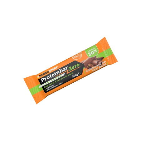 Barretta proteica Namedsport con una formulazione a base di Proteine del Latte, con basso contenuto di zuccheri ed olio di girasole con gustosa copertura in cioccolato al latte.