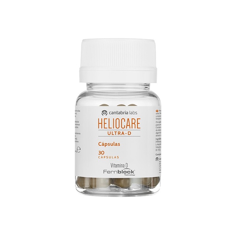 Integratore alimentare a base di Polypodium Leucotomos, Vitamina D, Vitamina C e Vitamina E, sostanze antiossidanti che contribuiscono alla protezione delle cellule dallo stress ossidativo. L'utilizzo di Heliocare Ultra D è utile per tutte le presone che svolgono attività lavorativa, sportiva , di hobby etc., all'aria aperta. È particolarmente indicato ad esempio per soggetti a rischio quali Fototipo I e II, persone che sviluppano facilmente eritema, pazienti affetti da fotodermatosi, vitiligine ecc.