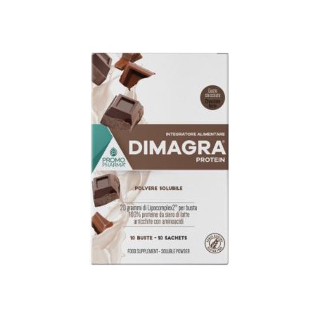 Dimagra Protein Cioccolato è un integratore a base di proteine isolate dal siero del latte che contribuiscono alla crescita e al mantenimento della massa muscolare specifico per la dieta dimagrante proteica aiutando la perdita di peso agendo sulla sola massa grassa e non sulla massa muscolare. Prodotto da Promopharma.