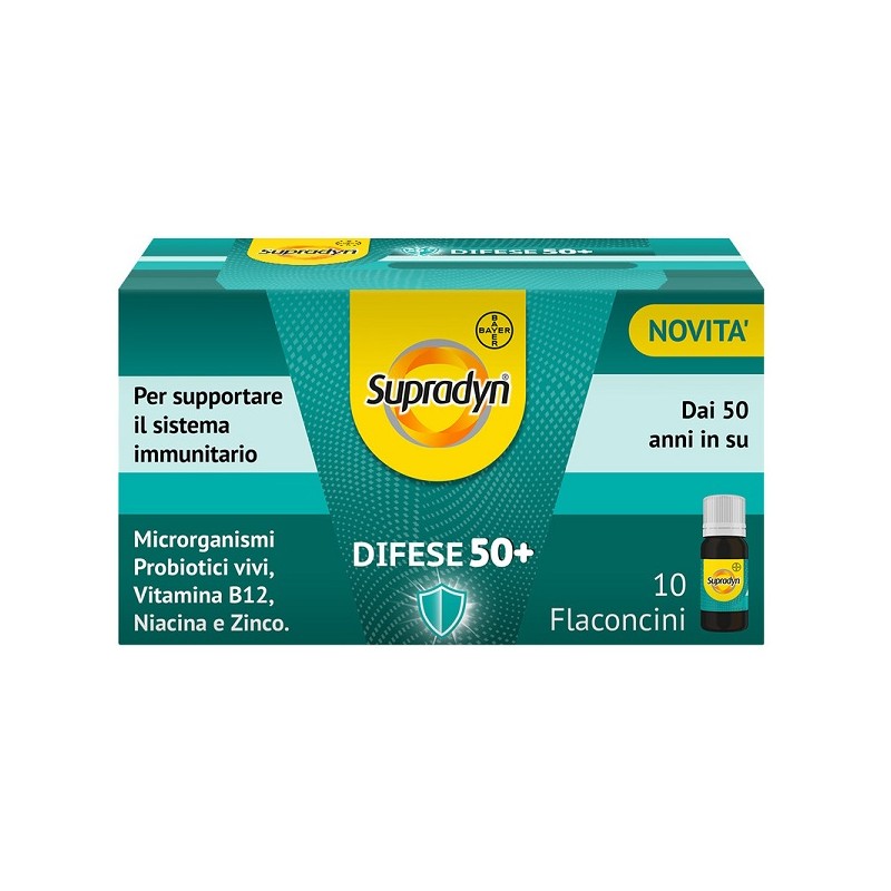 Supradyn è un integratore alimentare di microrgarnismi probiotici (fermenti lattici vivi), vitamina B12 ad alto dosaggio, di niacina e zinco particolarmente indicato in caso di ridotto apporto di questi nutrienti con la normale dieta o in caso di aumentato fabbisogno fisiologico. Prodotto da Bayer.