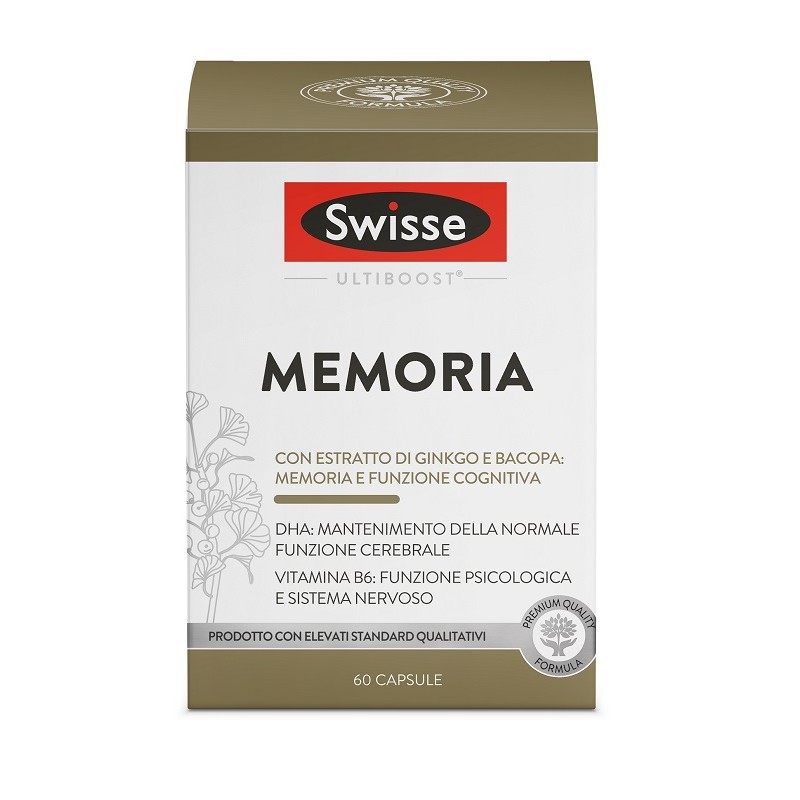 Swisse Memoria è un integratore alimentare prodotto progettato da Swisse con vitamine, minerali, omega 3, estratto di bacopa e ginkgo utile per momenti di stress mentale per favorire la memoria e funzione cognitiva.