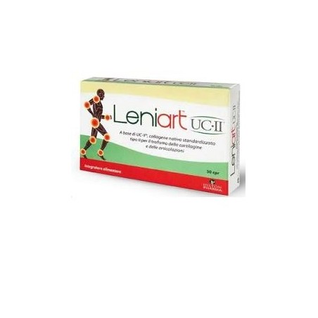 Integratore alimentare utile nel mantenimento del trofismo di cartilagine e articolazioni. Il prodotto contiene collagene di ultima generazione, altamente concentrato, ossia un collagene di tipo II nativo (non denaturato) particolarmente biodisponibile. Una dose giornaliera di Leniart UC•II (40 mg di UC•II) preserva la funzionalità articolare, facilita il movimento, migliora la flessibilità e può permettere un allenamento più lungo e costante ritardando la comparsa di disturbi articolari.