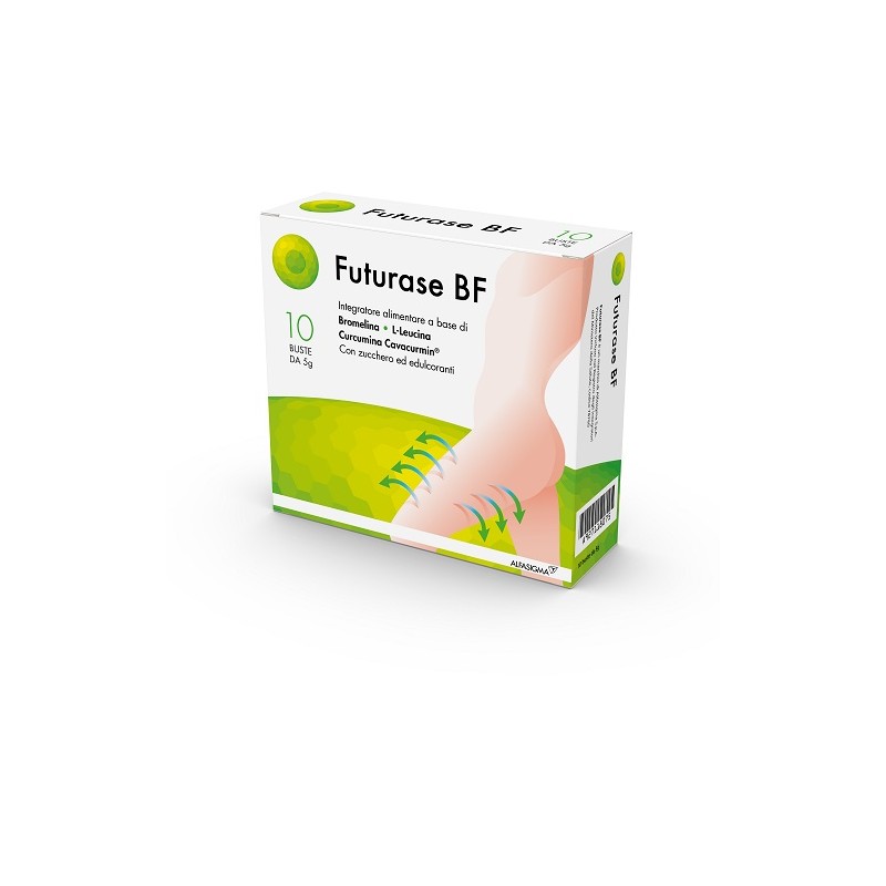 Futurase BF è un integratore alimentare prodotto da Alfagigma utile grazie alla sua composizione per fornire un valido aiuto nel contrasto all'infiammazione con riassorbimento di edemi ed ematomi, migliorando la mobilità ed accelerando il recupero funzionale.