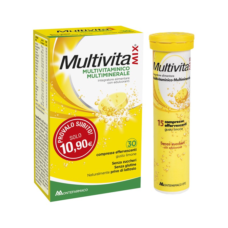 Multivitamix Effervescente è un integratore multivitaminico e multiminerale completo (100% dell'RDA). Prodotto da Montefarmaco Otc.