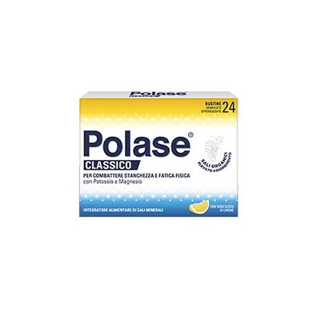 Polase Classico è un integratore alimentare di Potassio e Magnesio che aiuta a combattere stanchezza e fatica fisica dovuta anche al caldo. Formato 24 Bustine