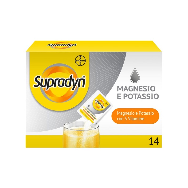 Supradyn Magnesio Potassio Senza Zucchero è un integratore alimentare a base di sali minerali e vitamine, indicato per sostenere l’organismo nei periodi di stanchezza fisica e mentale, caldo intenso, sudorazione o attività sportiva. La combinazione di magnesio e potassio aiuta a mantenere l’equilibrio elettrolitico e favorisce la normale funzione muscolare.