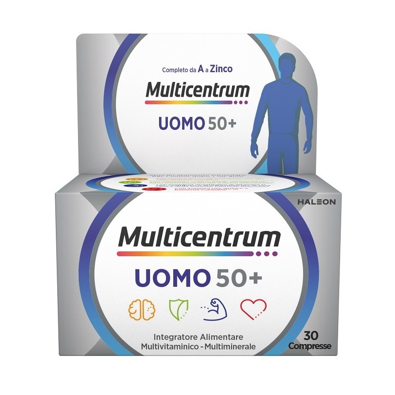 Integratore alimentare multivitaminico-multiminerale completo, formulato per soddisfare i fabbisogni nutrizionali degli uomini dopo i 50 anni.