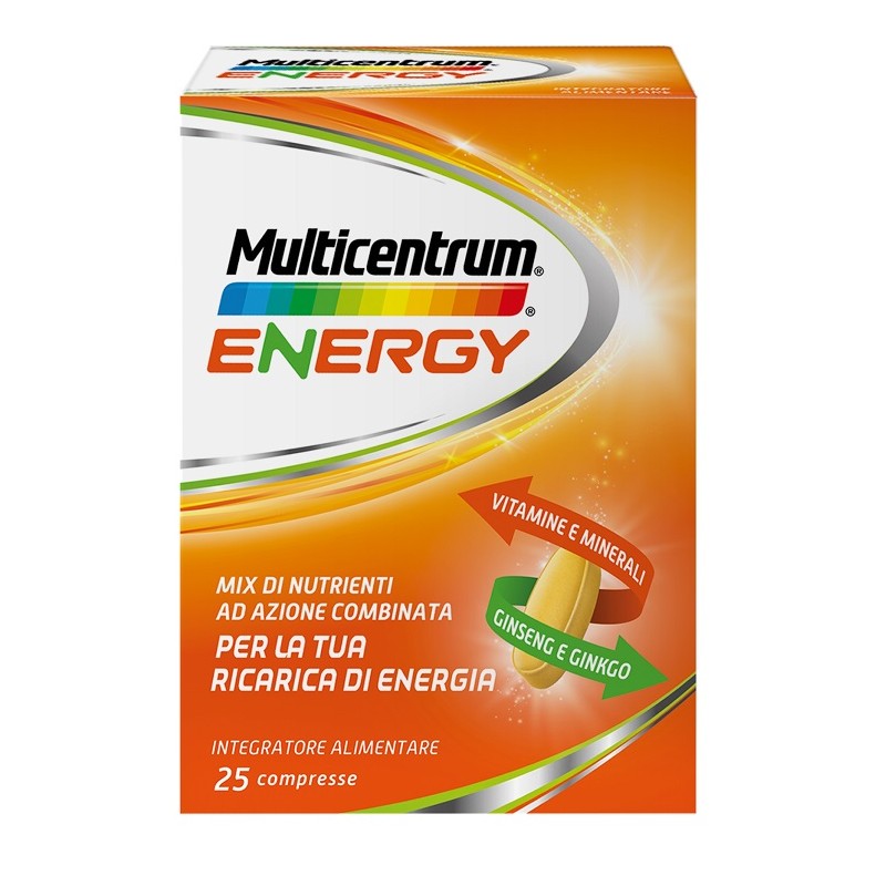 Multicentrum Energy Multivitaminico Multiminerale si usa per affrontare con maggiore carica la giornata aggiunge alla classica integrazione multivitaminica della famiglia multicentrum l'azione del Ginsegn che contribuisce alla riduzione di stanchezza e fatica, e gingko biloba, per supportare le funzioni cognitive e la memoria.