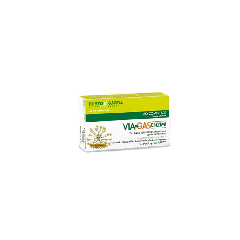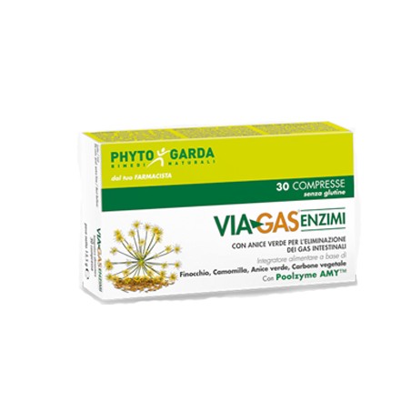 Viagas è un integratore alimentare con estratti naturali ed enzimi digestivi per l’eliminazione dei gas intestinali. Prodotto da Phyto Garda.