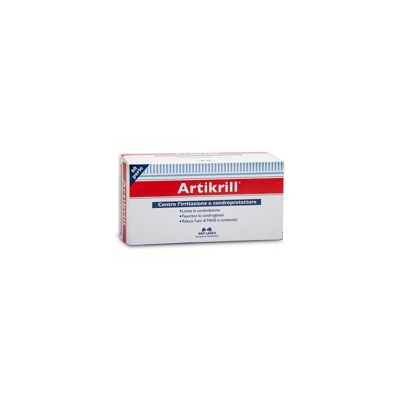 Artikrill cane è un mangime complementare dietetico formulato con acidi grassi omega-3 (EPA) da olio di pesce e con un livello adeguato di vitamina E per il supporto del metabolismo articolare in caso di osteoartrite del cane.