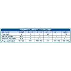 | Età | 0-1 mese | 1-2 mesi | 2-3 mesi | 3-4 mesi | 4-5 mesi | 5-6 mesi |