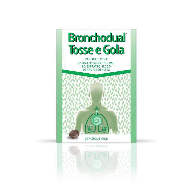 Posologia. Adulti e adolescenti di età superiore ai 12 anni: 1-2 pastiglie molli ogni 4 ore (da 4 a 6 volte al giorno). La dose massima giornaliera è di 12 pastiglie molli. Bambini di età compresa tra 6 e 12 anni: 1 pastiglia molle ogni 3 - 4 ore (da 4 a 6 volte al giorno). La dose massima giornaliera è di 6 pastiglie molli. Bambini di età inferiore ai 6 anni: La sicurezza e l’efficacia di BRONCHODUAL TOSSE E GOLA nei bambini di età inferiore ai 6 anni non sono state ancora stabilite. Modo di somministrazione: Uso oramucosale (lasciare sciogliere in bocca) Durata del trattamento: La durata massima del trattamento è di 5 giorni.