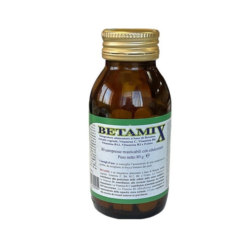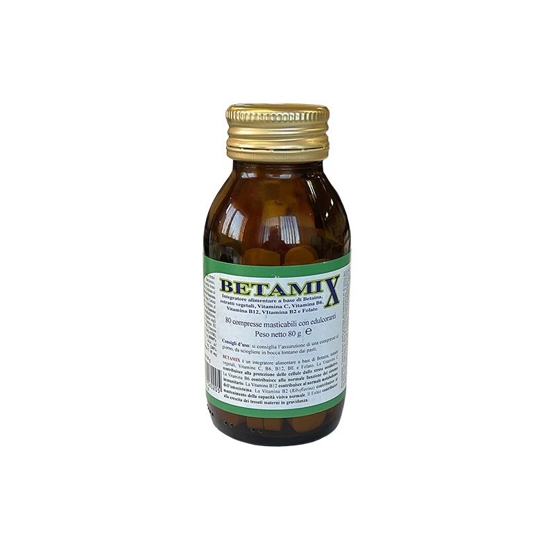 Integratore alimentare a base di betaina, estratti vegetali, vitamine C, B6, B12, BE e folato.
