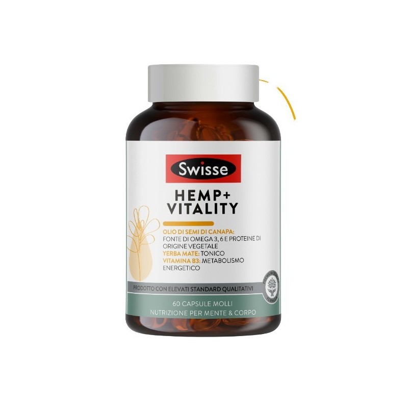Swisse Hemp+ Vitality è un integratore prodotto da Health and Happiness It. appositamente formulato per integrare la nutrizione del tuo corpo e della tua mente. La mente e il corpo sono in costante comunicazione per mantenerti in salute e in equilibrio; uno squilibrio tra i due potrebbe influenzare la tua energia e la tua vitalità. Per questo abbiamo sviluppato Swisse Hemp+ Vitality, una formula multi-nutriente scientificamente progettata per integrare la tua nutrizione e supportare la vitalità. La nostra formula unica combina olio di semi di canapa spremuto a freddo, una ricca fonte vegetale di acidi grassi essenziali, con estratti di erbe, vitamine e minerali selezionati.