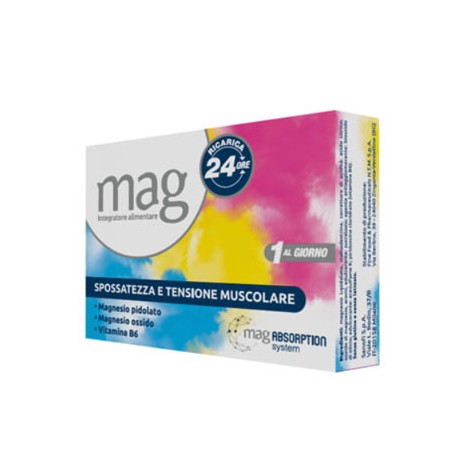 Mag è un integratore alimentare a base di magnesio e vitamina B6, con edulcoranti, può essere utile in caso di spossatezza e tensione muscolare. La sua formulazione, basata sulla composizione Mag absorption system, combina sali di magnesio ad assorbimento differenziato e vitamina B6, per un'azione sinergica.