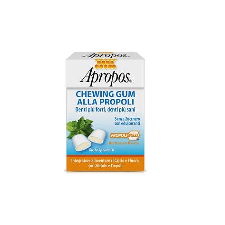 Chewing gum con estratto di propoli e xilitolo, calcio e fluoro.