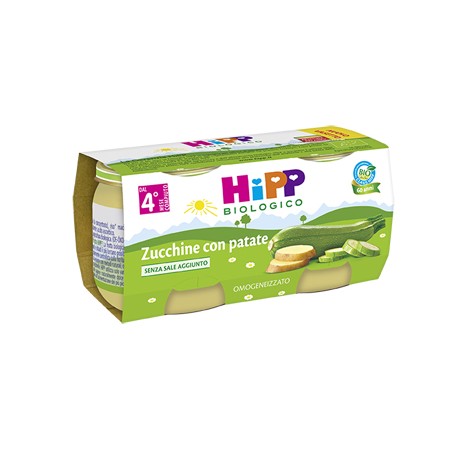Omogeneizzato biologico di zucchine con patate prodotto da Hipp Italia. Ideale per completare pappe, brodi e passati.