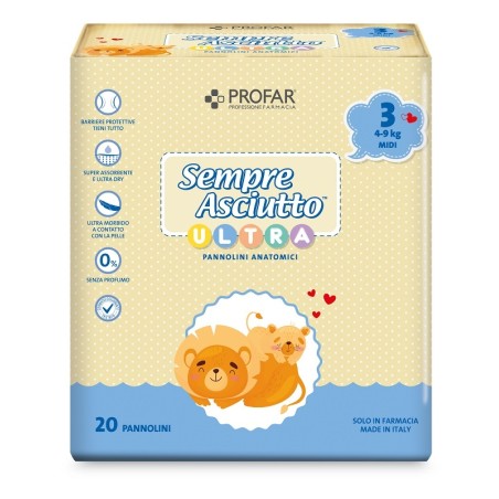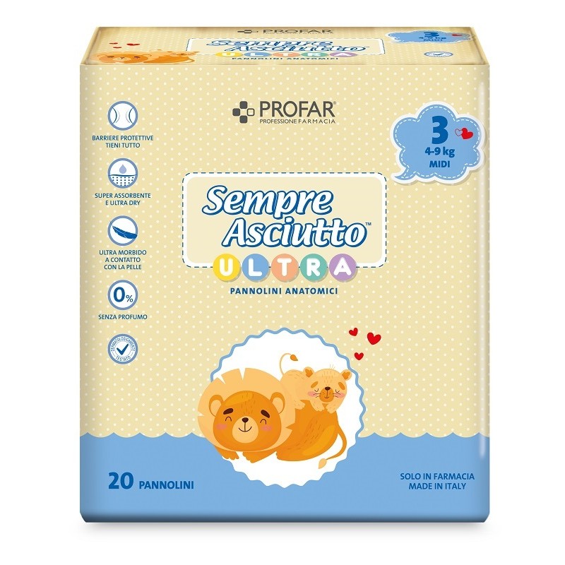 Federfarma.co Pannolini Profar Sempre Asciutto Ultra Midi 4/9 Kg 20 Pezzi