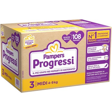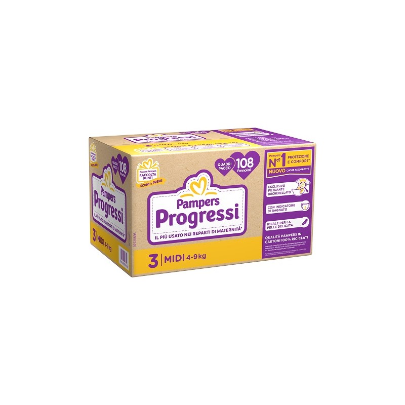 Pampers Progressi Midi, Taglia 3 (4-9 kg), 108 pannolini.