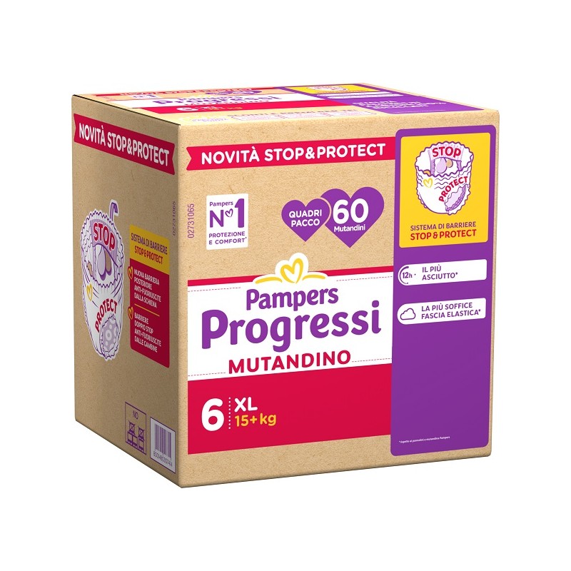 Pampers Progressi Mutandina Quadri XL 60 pezzi è la soluzione ideale per bambini di peso compreso tra 15 e 25 kg che necessitano di protezione affidabile, comfort e libertà di movimento durante tutta la giornata.