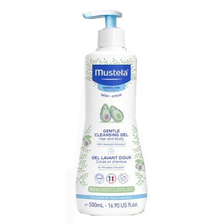 Detergente Mustela Corpo e Capelli peri i bambini già dalla nascita non brucia gli occhi con il 90% di ingredienti di origine naturale senza parabeni, ftalati e fenossietanolo. Formato 500ml