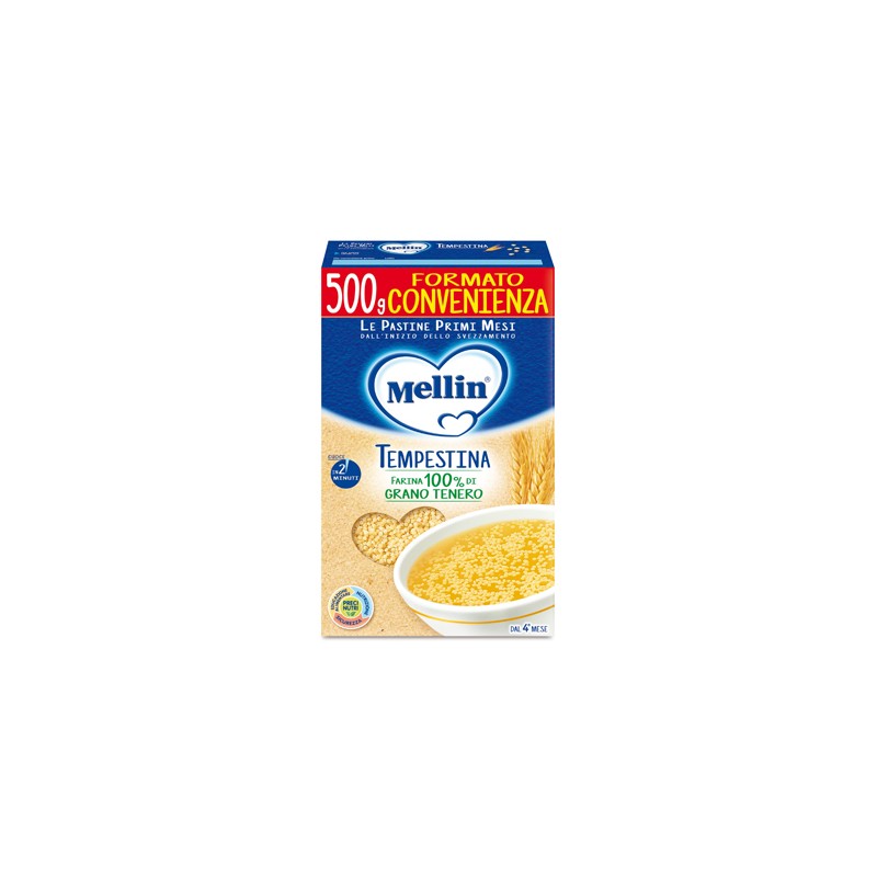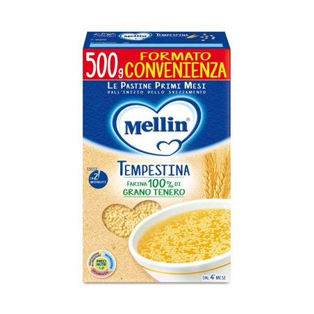 La Pastina Mellin richiede una cottura di 4 minuti circa, a seconda della densità e della consistenza preferite dal bambino.
