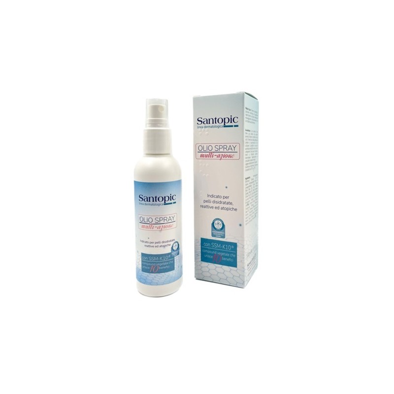 Olio spray multi-azione: indicato in caso di pelle disidratata, sensibilizzata ed atopica. Protegge, nutre e ripristina il film lipidico cutaneo.