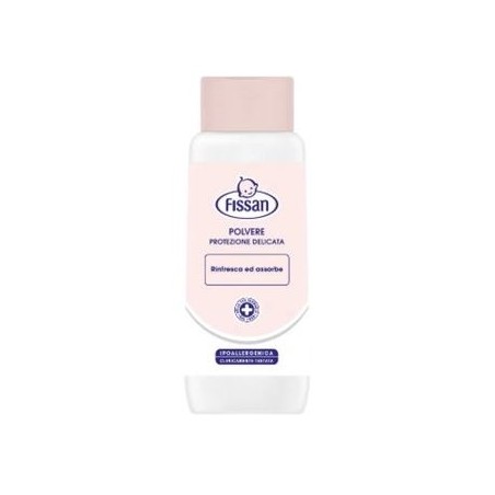 Fissan polvere protezione delicata è ideale per il benessere e la protezione quotidiana del sederino e delle zone particolarmente sensibili di neonati e bambini e svolge una delicata azione rinfrescante ed assorbente consentendo una normale traspirazione cutanea, aiuta a proteggere contro arrossamenti e irritazioni dovuti allo sfregamento da pannolino o ad altri fattori esterni.