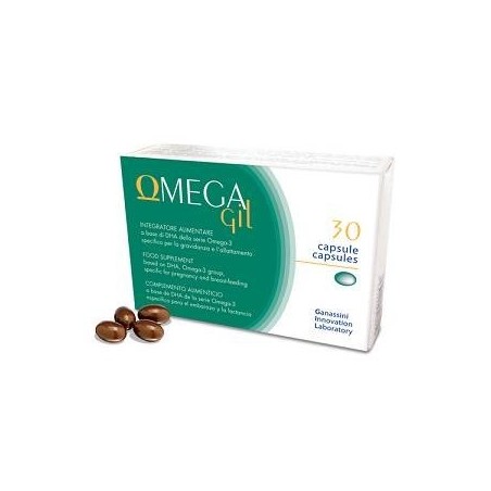 Integratore alimentare con acido docosaesaenoico (DHA) delle serie Omega-3 sottoforma di trigliceride, di origine biotecnologica (non contiene olio di pesce). In relazione al contenuto in DHA, OMEGAGIL è utile durante la gravidanza e l’allattamento e nel caso di aumentato fabbisogno o diminuito apporto con la dieta dei nutrienti che lo compongono. Il DHA contribuisce al mantenimento della normale funzione cerebrale. L’effetto benefico si ottiene con l’assunzione giornaliera di 250 mg di DHA. Si consiglia l’assunzione del prodotto da solo o in associazione con NEOGRAVIGIL.