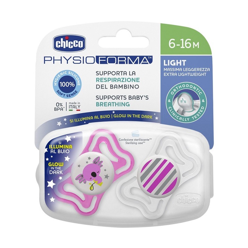 Chicco Succhietto Light Luminoso Silicone 6-16 Mesi 2 Pezzi