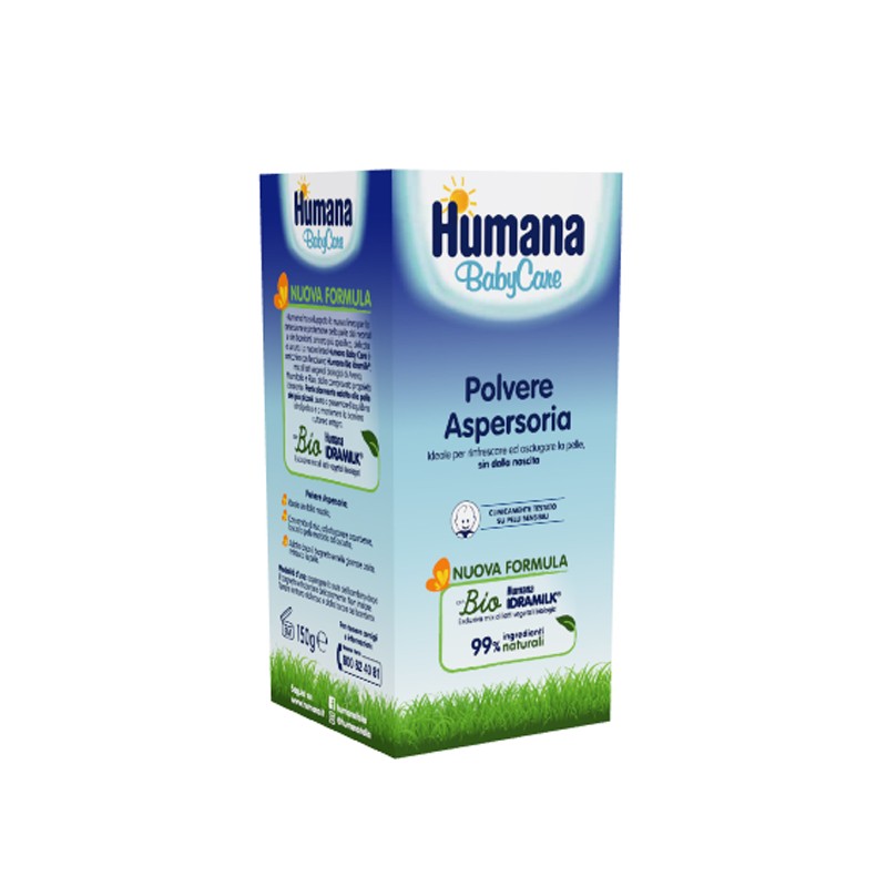 Humana Italia Humana Baby Care Polvere Aspersori è una polvere aspersoria, ideale per rinfrescare ed asciugare la pelle sin dalla nascita. Con amido di riso, ad alto potere assorbente, lascia la pelle morbida ed asciutta. Adatto dopo il bagnetto e nelle giornate calde. Prodotta da Humana Italia.