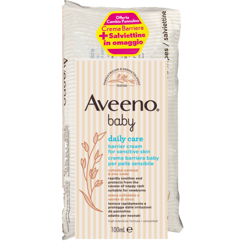 AVEENO Baby daily care crema barriera baby aiuta a lenire la pelle sensibile e delicata dei bambini, proteggendola dalle irritazioni da pannolino. Grazie alla sua formula, crea una barriera traspirante sulla zona del pannolino, proteggendo la pelle dagli agenti irritanti esterni. Dona una sensazione di sollievo rapida e duratura, migliorando visibilmente l’aspetto della pelle già dal successivo cambio di pannolino. Facile da applicare
